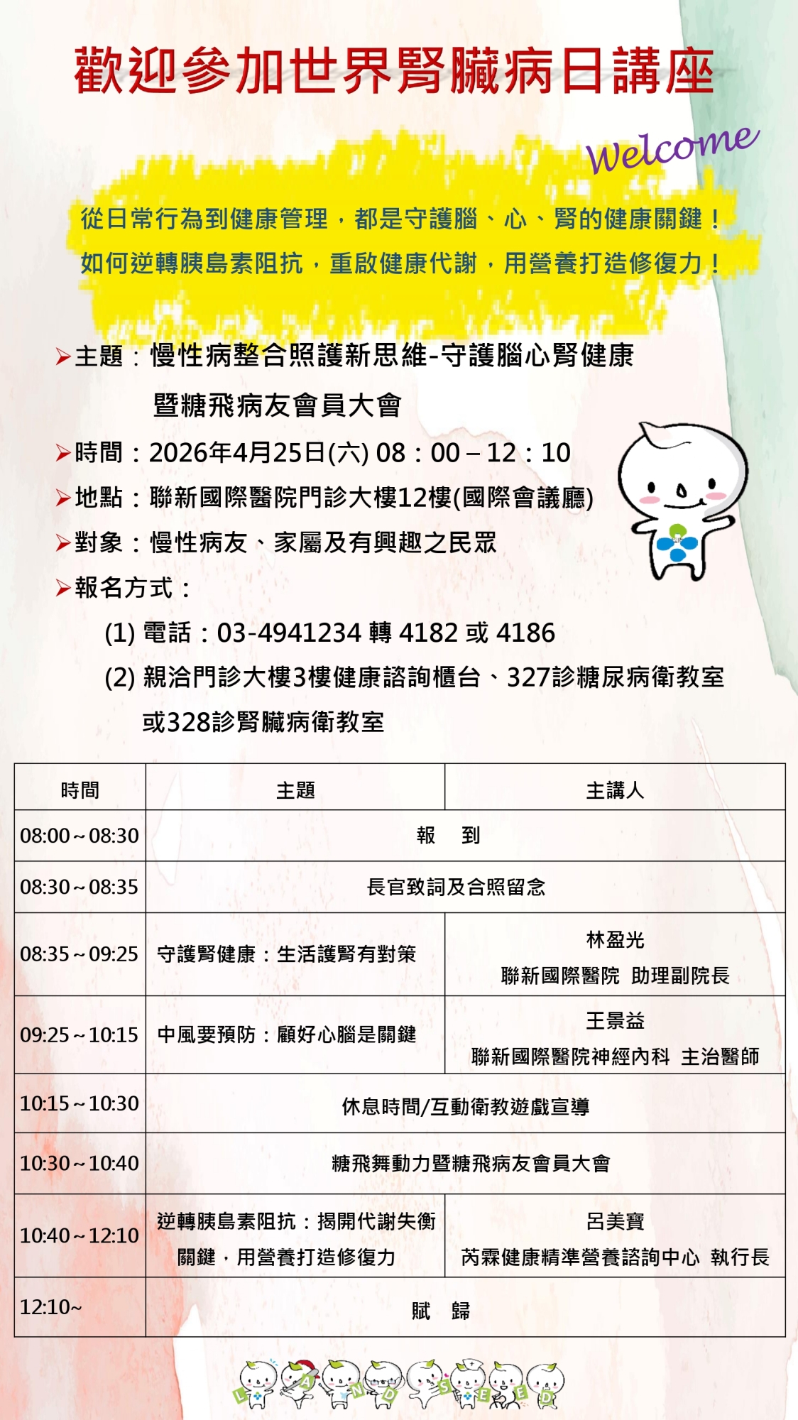 ※若需報名聯新國際醫院腎臟病日講座,請參閱以下海報活動報名方法事先報名