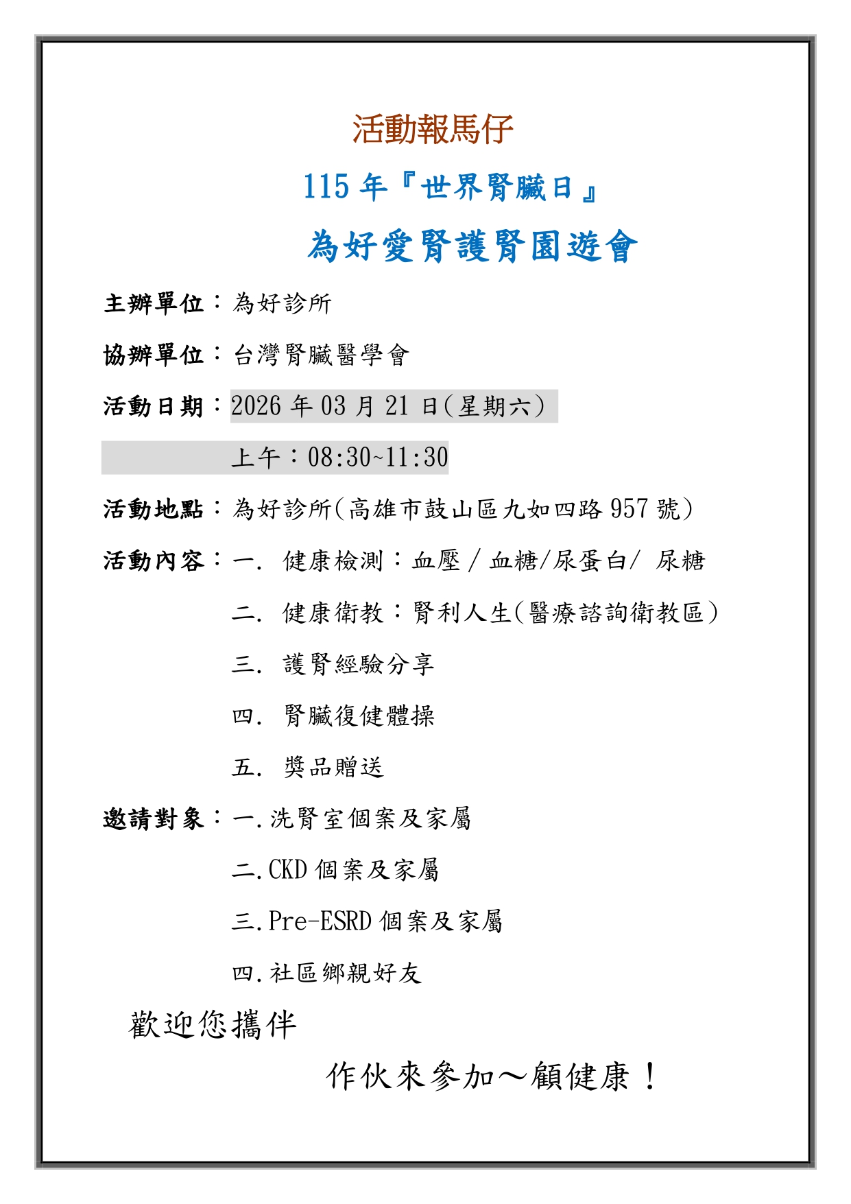 2026世界腎臟日 腎利人生講座